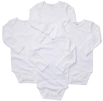 Carter's 4 Pack Long Sleeve Bodysuits 6 Months White: Clothing