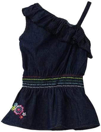 Carters Baby-Girls Infant Floral Embroidery Denim Dress, Dark Indigo, 12 Months: Clothing